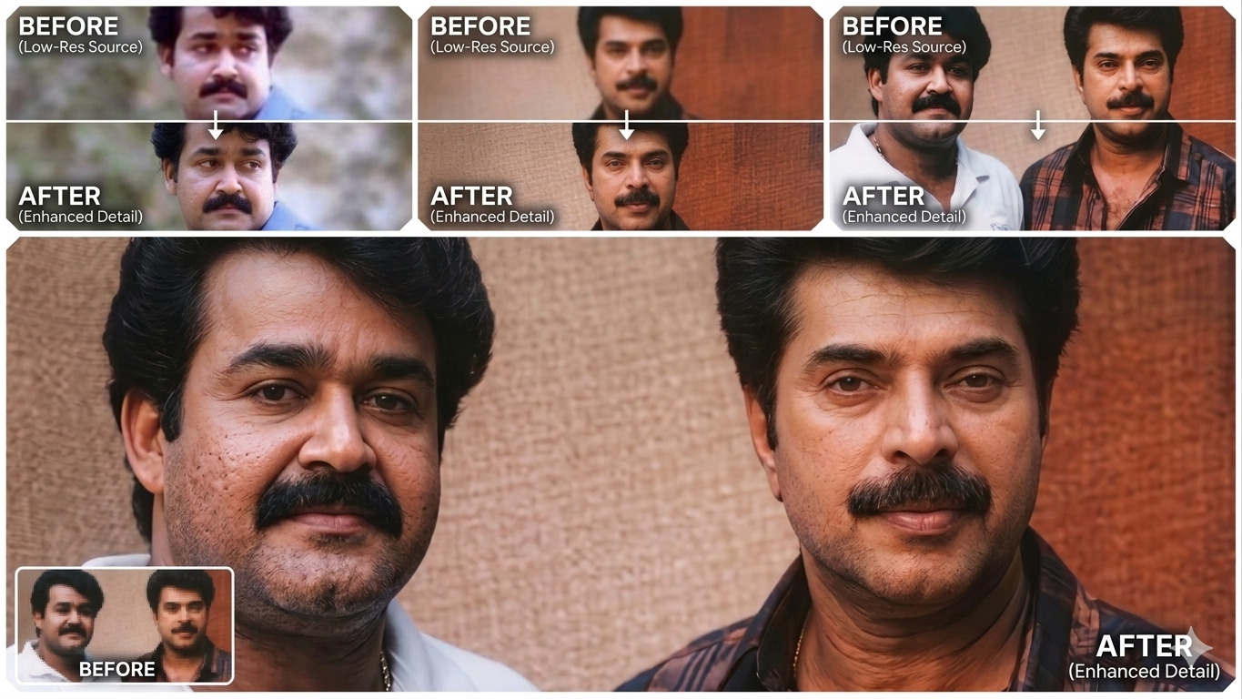 In the world of 2026 digital imaging, "Enhancing" no longer means just making an image bigger. Traditional upscalers often create a "plastic" look or change the subject's identity. This workflow uses Generative Restoration. By feeding a specific set of technical constraints into the Gemini AI engine, you are directing the model to "fill in the blanks" of low-resolution data with realistic textures like skin pores and fabric weaves, all while maintaining 100% fidelity to the original reference.